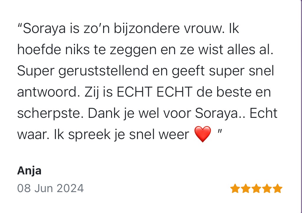 “Soraya haar grootste levensmissie is om speciale vrienden te voorzien van inzichten en advies, zodat u een gelukkig en vervuld leven kunt leiden”.