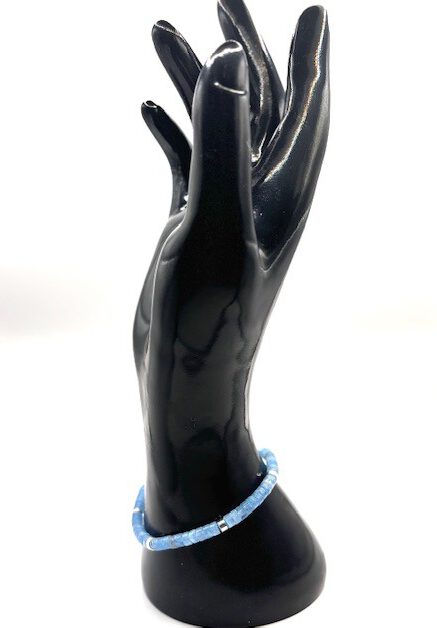 Deze armband is gemaakt met zorgvuldig geselecteerde aquamarijnstenen en is verstelbaar, waardoor hij comfortabel past om bijna elke pols.