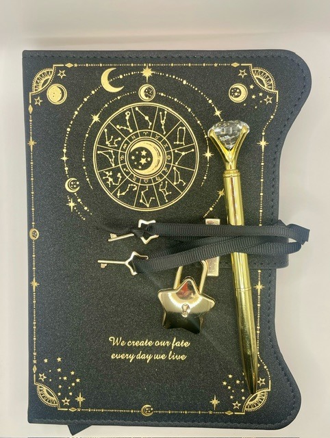 De journal heeft een elegante zwarte cover met goudkleurige belettering en de inspirerende spirituele tekst: “We create our fate every day we live.”