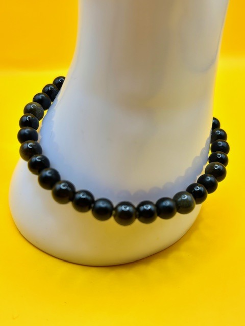Een armband van zwarte toermalijn, obsidiaan en hematiet (een krachtige combinatie die bescherming, aarding en energetische helderheid samenbrengt)